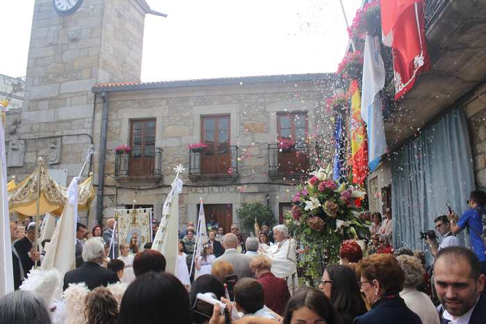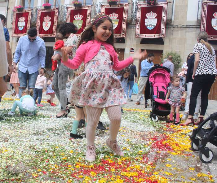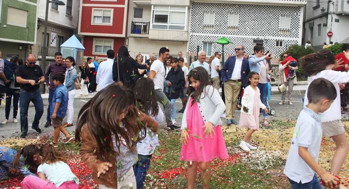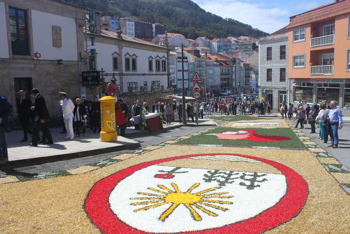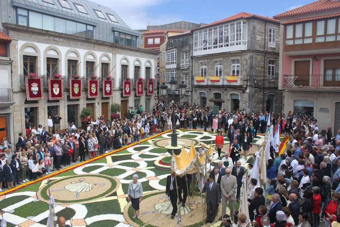 O casco histórico da vila encheuse de xente na mañá do domingo para contemplar os coloridos tapices, polos que pasado o mediodía transcorreu a procesión do Santísimo.