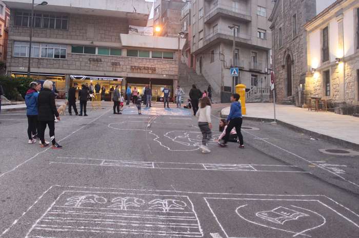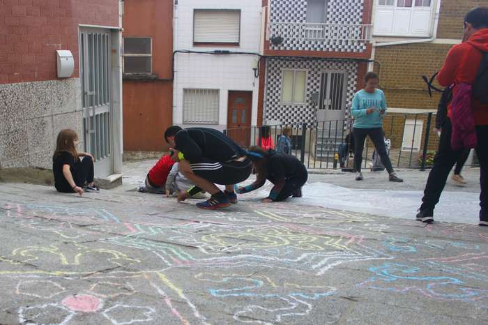 O alcalde do Concello da Guarda, Antonio Lomba, e as concelleiras de Turismo e Cultura, Montserrat Magallanes e María Elena Baz, visitaron durante a noite do sábado ás mulleres, homes, nenas e nenos que se afanaban por ultimar os preparativos, cortando as últimas flores nos baixos das vivendas dos casco antigo e debuxando os deseños nas rúas.
