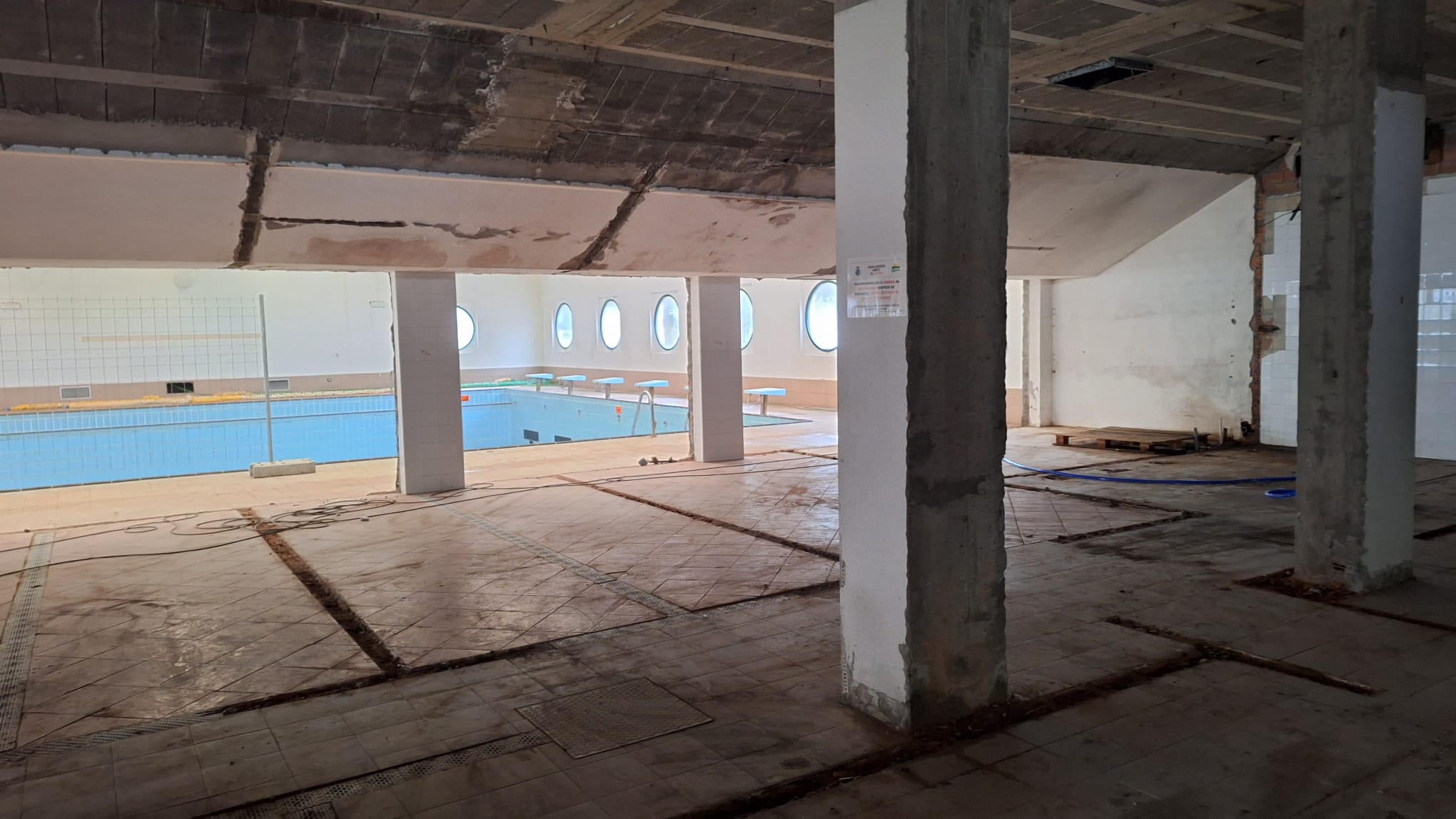 As obras atópanse na fase de derrubamento e escombros, cunhas instalacións da piscina municipal xa pouco recoñecibles. A piscina pechouse no mes de decembro para dar comezo a esta renovación total, que fará que permaneza pechada durante o 2026.