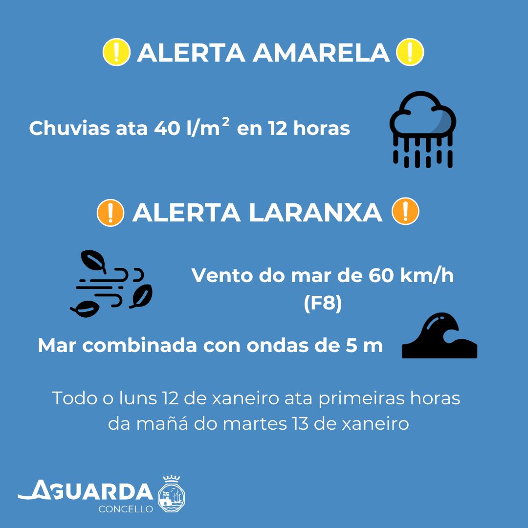 Na xornada de hoxe e mañá temos avisos por fenómenos meteorolóxicos. No mar hai aviso laranza por vento de Forza 8 e aviso amarelo por mar combinada. Ademais, mantenese o aviso amarelo por acumulado de chuvias de ata 40 litros por metro cadrado en 12 horas.