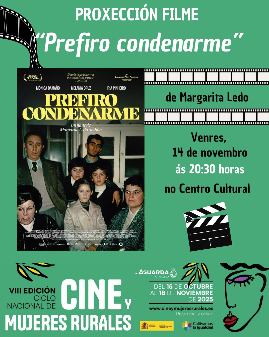 Para este venres 14,ás 20:30h, proxectarase no Centro Cultural o documental “Prefiro Condenarme” de Margarita Ledo. Trátase dun documental sobre o caso de Sagrario, unha mariscadora de Ferrol no ano 1972. Por aquel entón, Sagrario é xulgada por adulterio, contemplado polo franquismo como un dos “delitos específicos das mulleres”. Sometida desde os 16 anos a todo tipo de abusos, rebelarase ao seu marido e á opresión social ata ser a primeira divorciada da cidade.