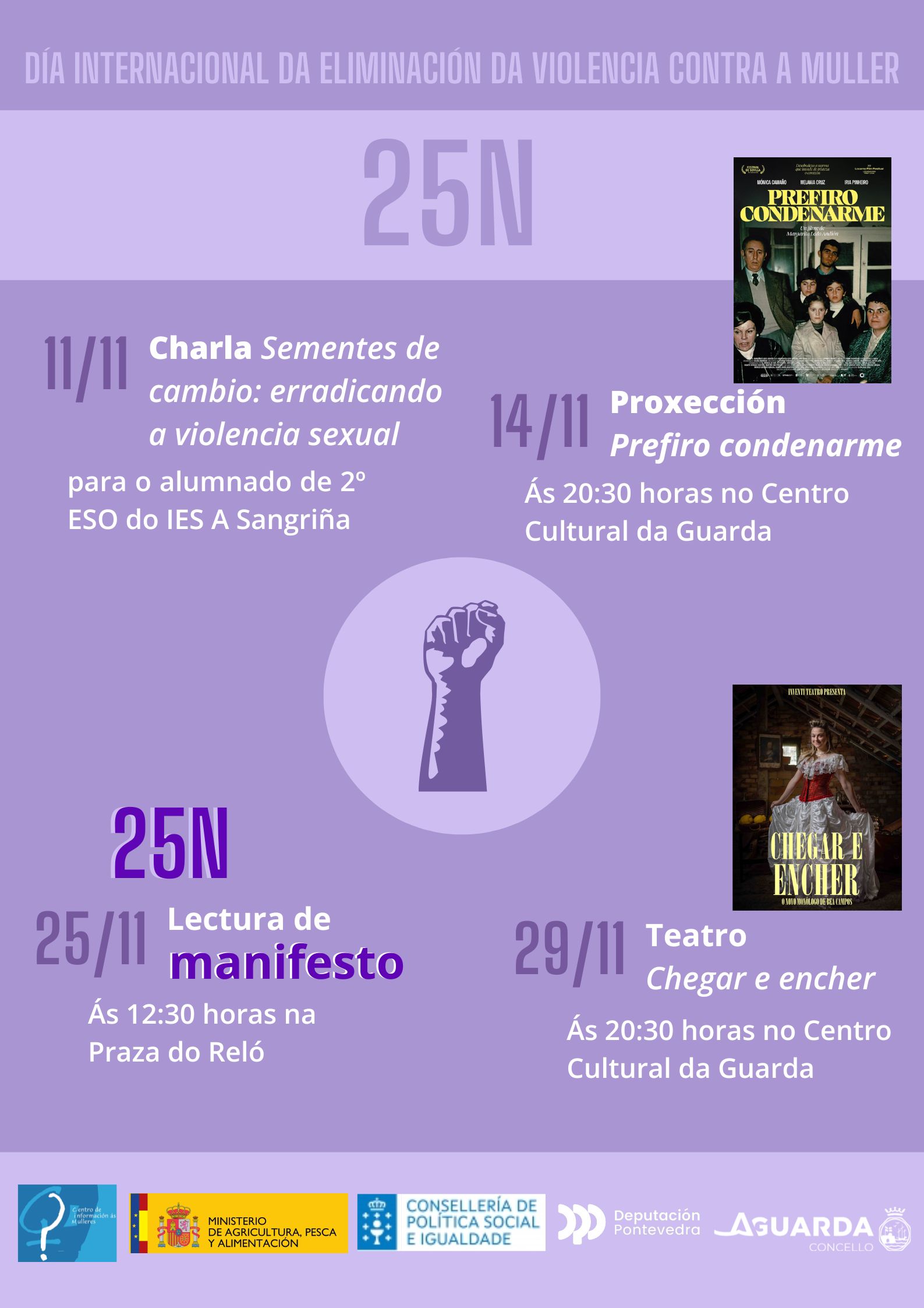 Este ano con motivo do Día Internacional da Eliminación da Violencia contra a Muller, 25N, A Guarda prepara accións en diferentes ámbitos.