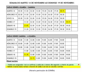 Horario semanal do transbordador A Guarda – Caminha do martes 14 ao domingo 19 de novembro