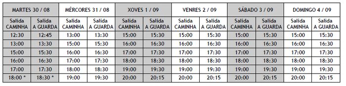 Durante esta semana, dende o día 30 de agosto ao domingo 4 de setembro os horarios serán os seguintes: