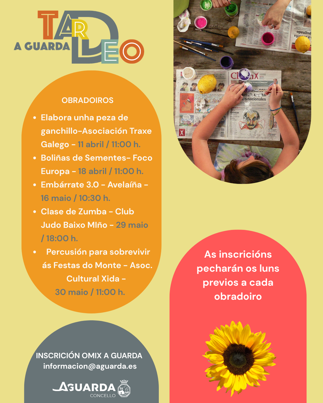 A OMIX do Concello da Guarda presenta para esta primavera-verán unha axenda repleta de actividades. En abril arranca a programación de TARDEO, uns obradoiros que se organizan en colaboracións coas asociacións da Guarda. Estes xúntanse cos obradoiros organizados pola OMIX …