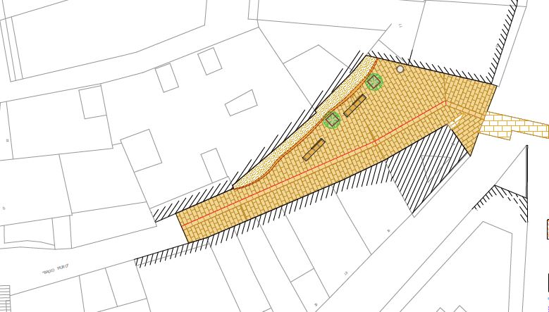 O proxecto contempla a demolición da parcela da propiedade, instalando un par de bancos e pequenas árbores para embelecer a rúa e proporcionar unha pequena zona de descanso.