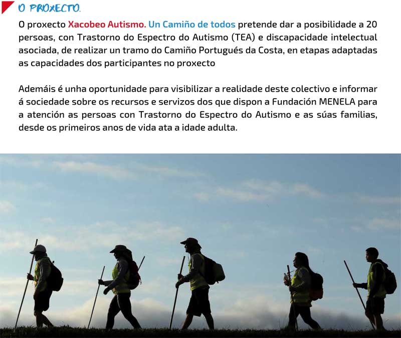 Este proxecto, denominado Xacobeo Autismo. Un camiño de todos, está promovido pola Fundación MENELA e enmarcado dentro do programa O teu Xacobeo, impulsado pola Xunta de Galicia. Conta ademais coa colaboración do Concello de Nigrán. A Fundación MENELA, O teu …