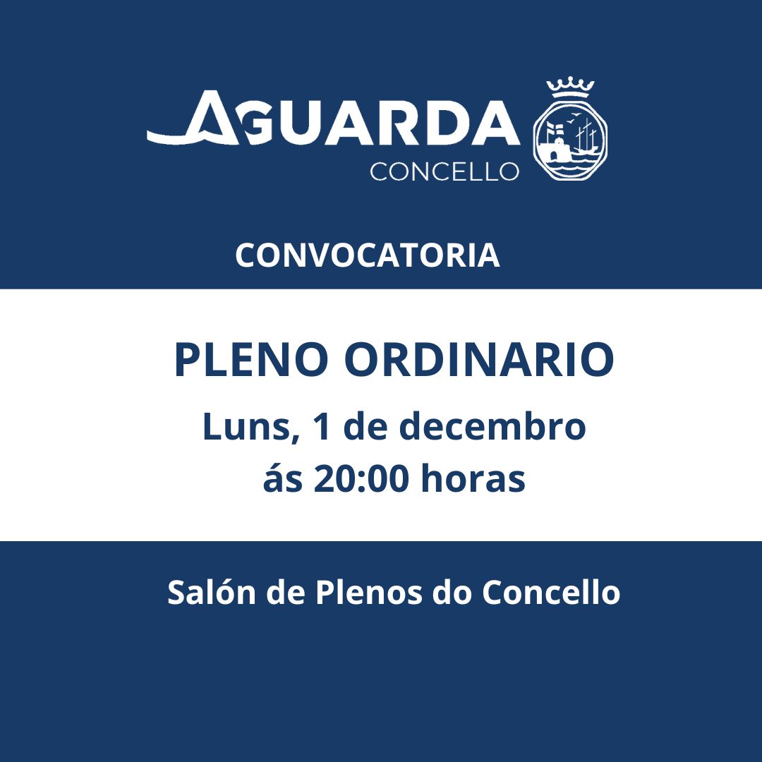 O Concello da Guarda modifica a data do pleno ordinario convocado para este mércores 26 para o próximo luns 1 de decembro ás 20:00h no Salón de Plenos da Casa dos Alonso.