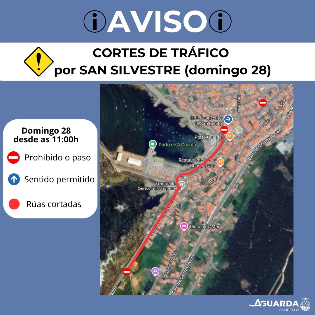 Con motivo da carreira e andaina de San Silvestre o próximo domingo 28 de decembro, produciranse cortes de tráfico no entorno do porto da Guarda. A partir das 11:00h estará prohibida a circulación en toda a rúa Porto e na …