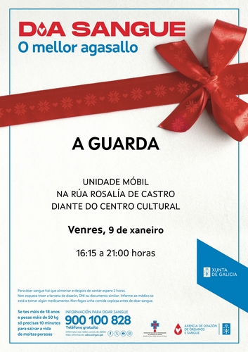 A unidade móbil da Axencia de Doazón de Órganos e Sangue regresa o próximo venres á Guarda na súa primeira visita do ano 2026. A unidade móbil estará o venres 9 de xaneiro de 16:15 a 21:00 horas en horario …