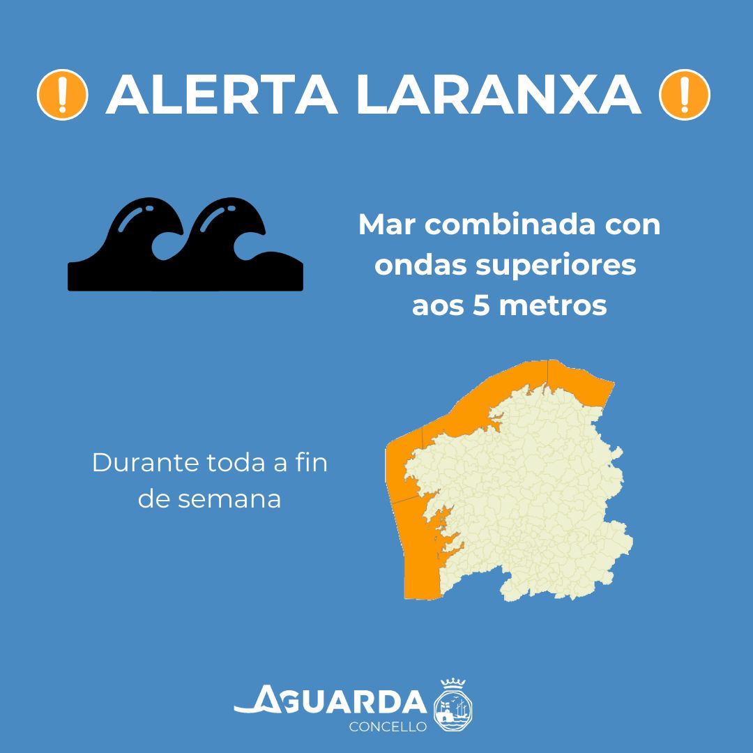 A Axencia Estatal de Meteoroloxía (AEMET) alerta de fenómenos costeiros de nivel LARANXA en todo o litoral galego. Durante a fin de semana manterase case de xeito continuo a alerta, por mar combinada con ondas que poderán superar os 5 …