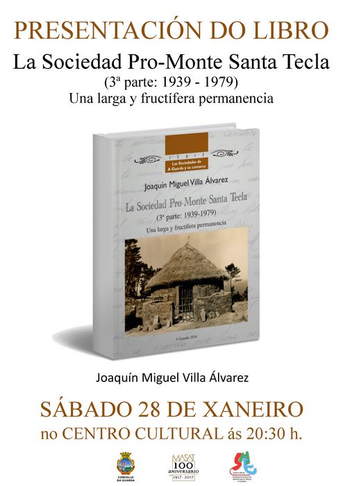 O Centro Cultural da Guarda acollerá o sábado 28 de xaneiro, ás 20’30 horas, a presentación do libro “La Sociedad Pro-Monte Santa Tecla, 3ª parte”, do historiador e investigador guardés Joaquín Miguel Villa Álvarez.