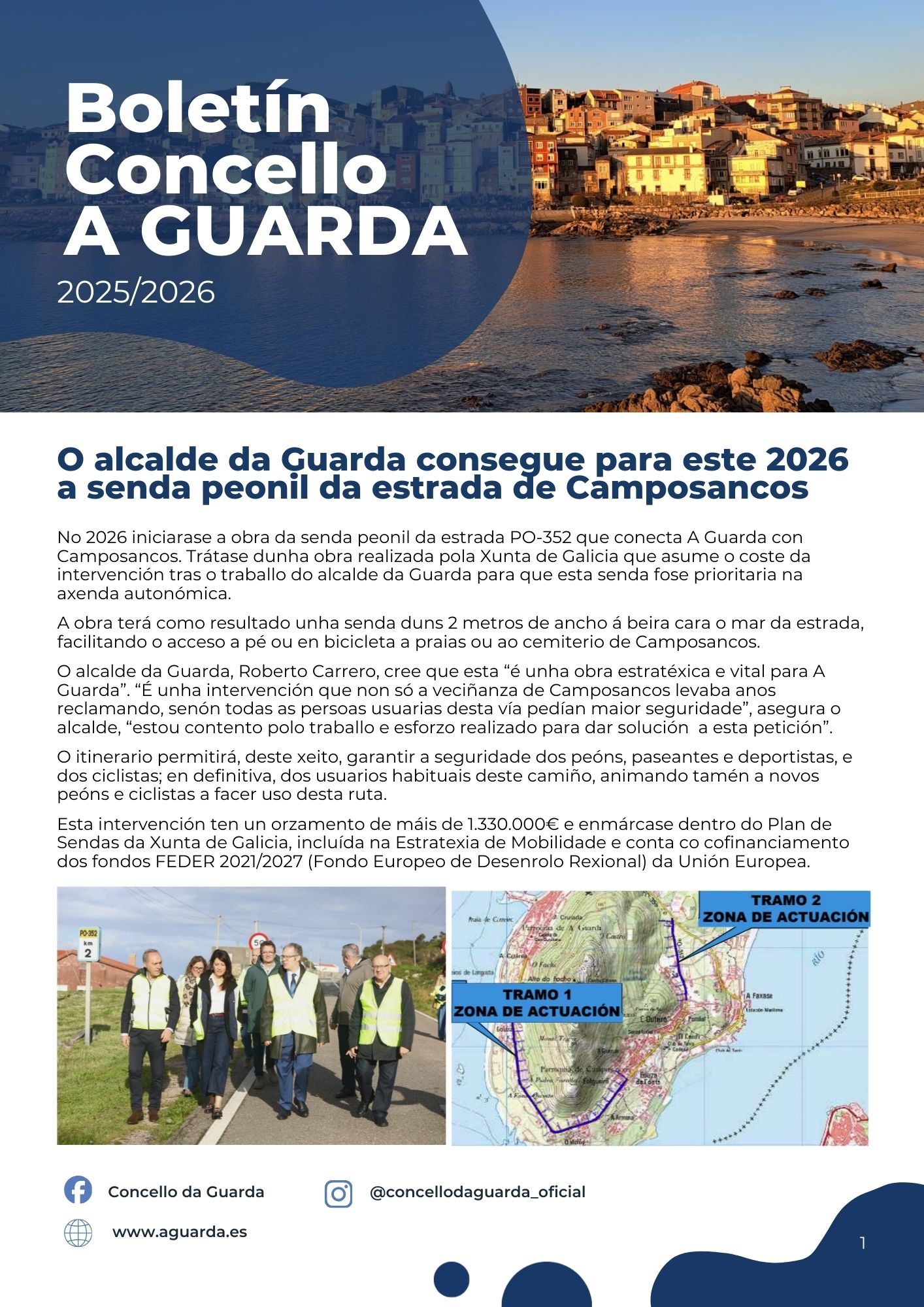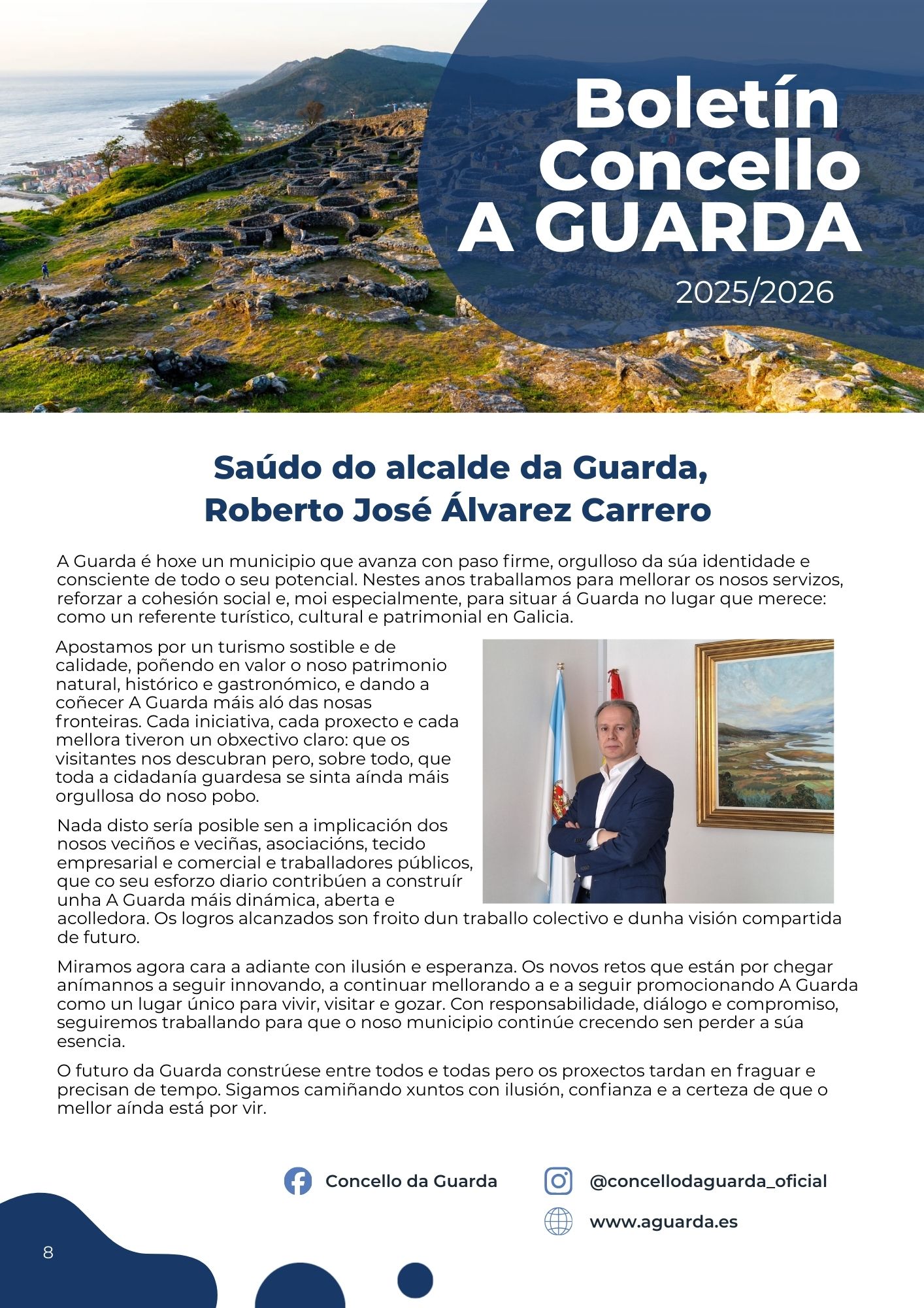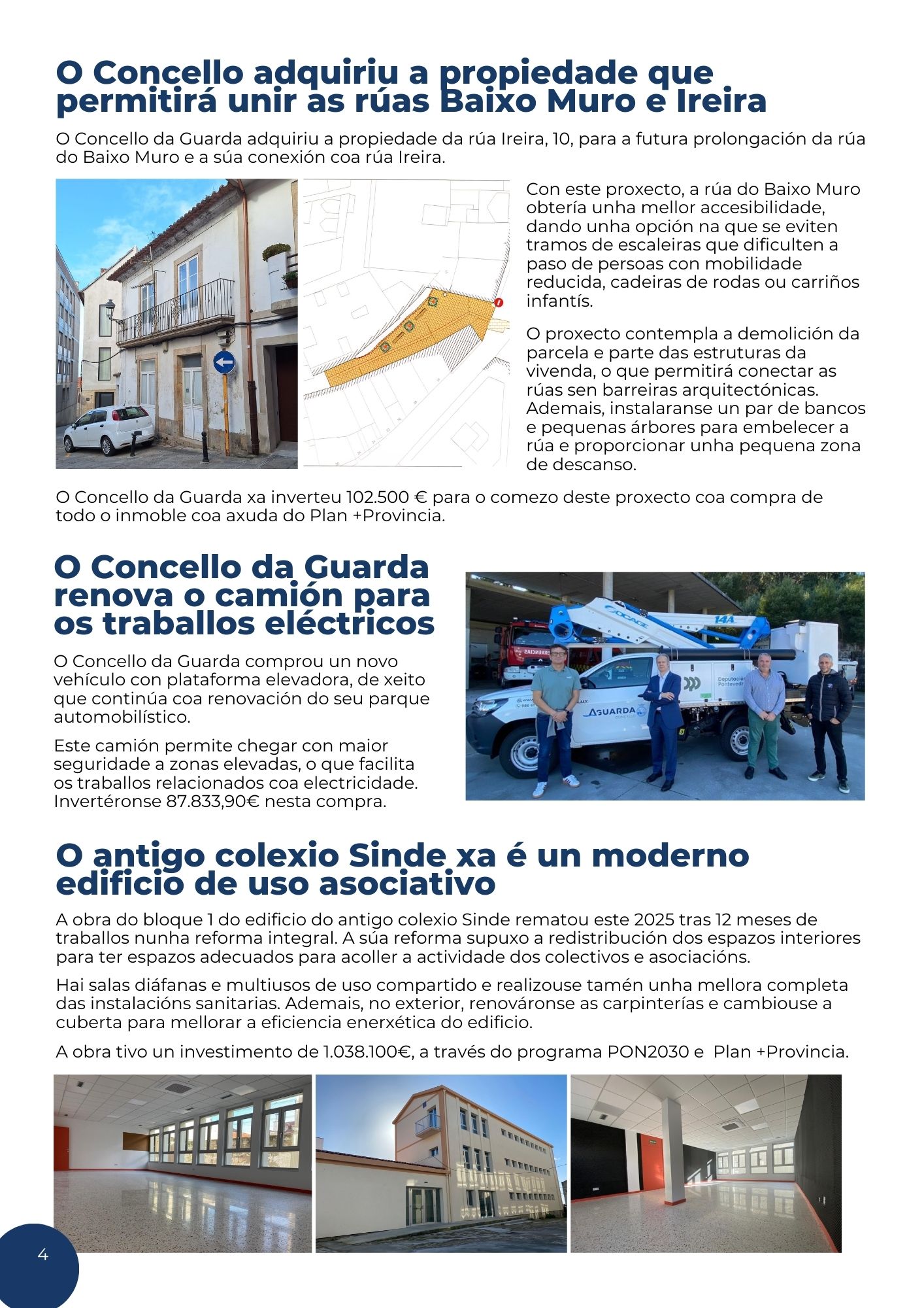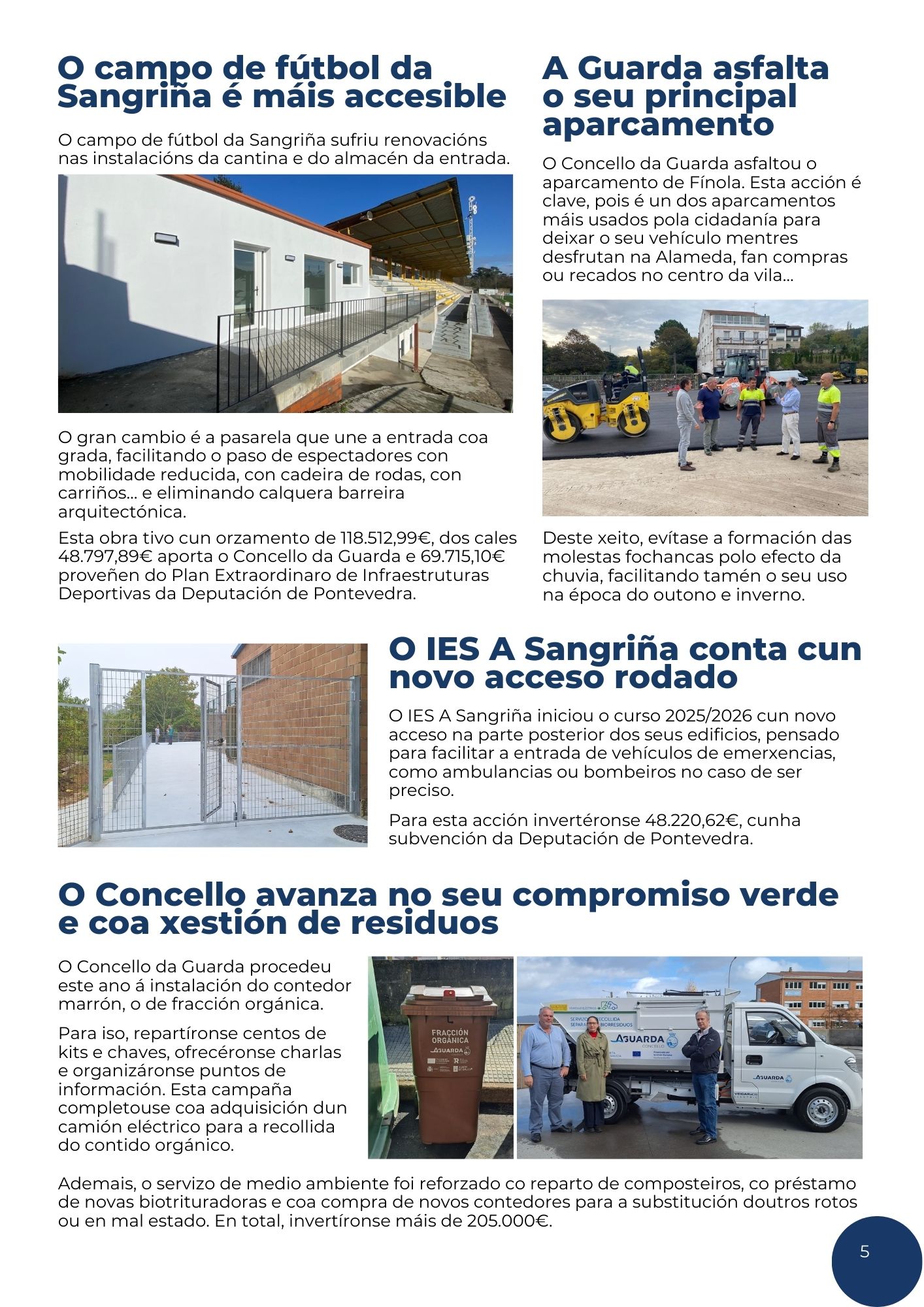 O Concello da Guarda está a difundir un boletín resumindo gran parte dos proxectos realizados na Guarda no 2025, así como os proxectos que xa se iniciaron ou que darán comezo en 2026.
