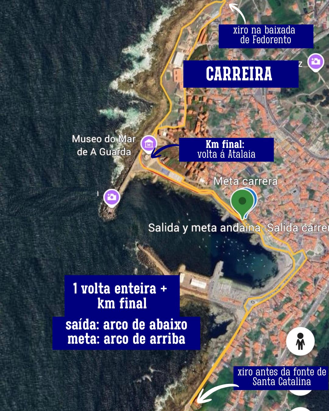 O percorrido da andaina será de 4km aproximadamente dando unha volta ao circuíto e rematando no mesmo punto de saída. Pola súa banda, a carreira será de 5km aproximadamente, continuando o percorrido dando volta na Atalaia antes de chegar á meta final.
