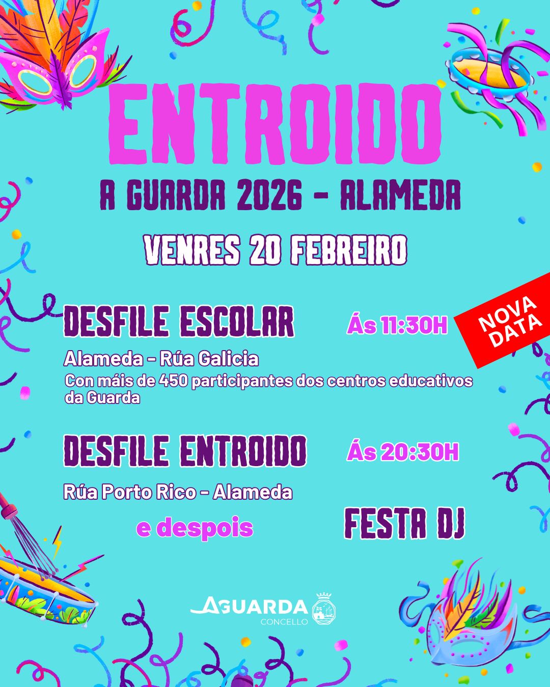 Á tarde sairá o Desfile de Entroido, ás 20:30h da Rúa Porto Rico (Esquina Famosa) e percorrerá a Rúa Galicia ata rematar na Alameda. Un total de 19 participantes, entre gurpos, carrozas e comparsas darán cor ás rúas guardesas.